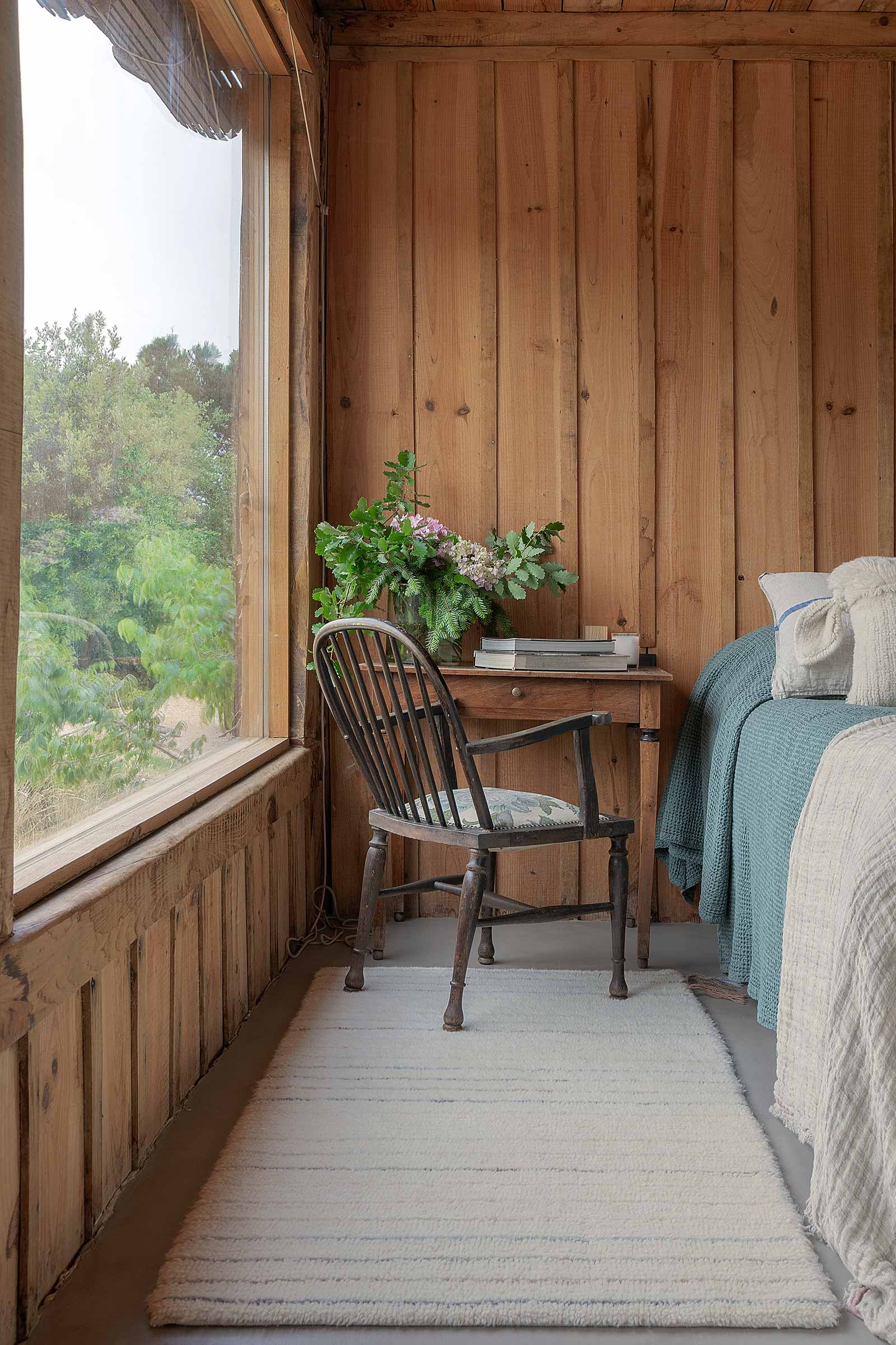 La alfombra Arona de Lorena Canals está tufted en suave color Blanco Oveja no teñido con un sencillo pero hermoso dibujo de finas rayas de hilos mezclados de una gama de once colores diferentes de nuestra carta de colores Woolable. Disponible en forma rectangular y redonda y acabada con borlas tricolores que sobresalen del borde.